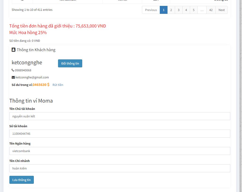 Bước 4: Cập nhật số tài khoản và quản lý đơn hàng của mình