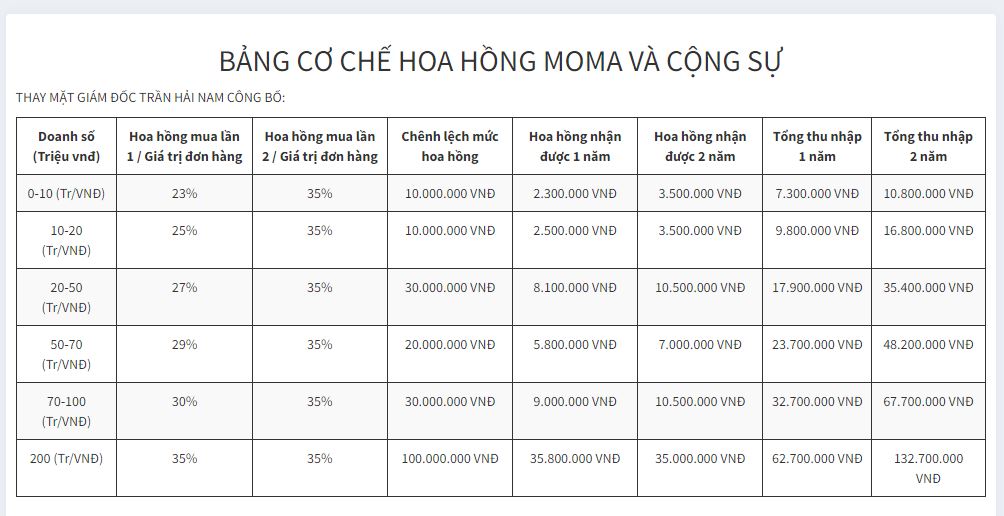 Bước 5: Phát triển thêm khách hàng và đặt mục tiêu thu nhập thụ động từ Moma, Tính toán mục tiêu dựa vào bảng sau