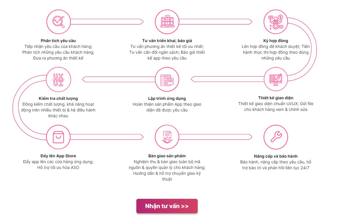 moma cam kết chất lượng, đảm bảo tiến độ phát triển app nhờ quy trình thiết kế app chuyên nghiệp, tinh gọn.