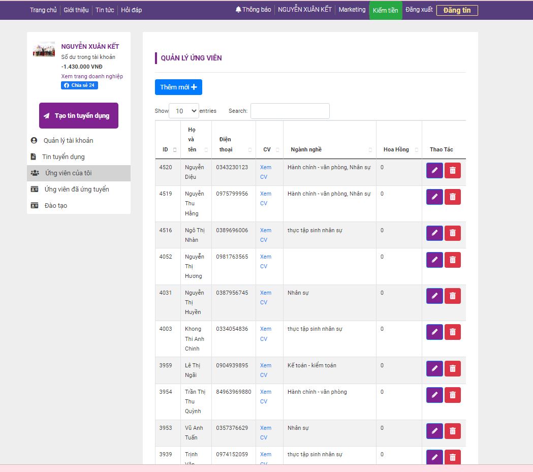 Dịch vụ cung cấp mỗi ngày 5 ứng viên đi làm ngay xem tại đây( lưu ý phải đánh giá và đăng tin thao tác thì hệ thống mới gửi không hệ thống sẽ dừng lại)