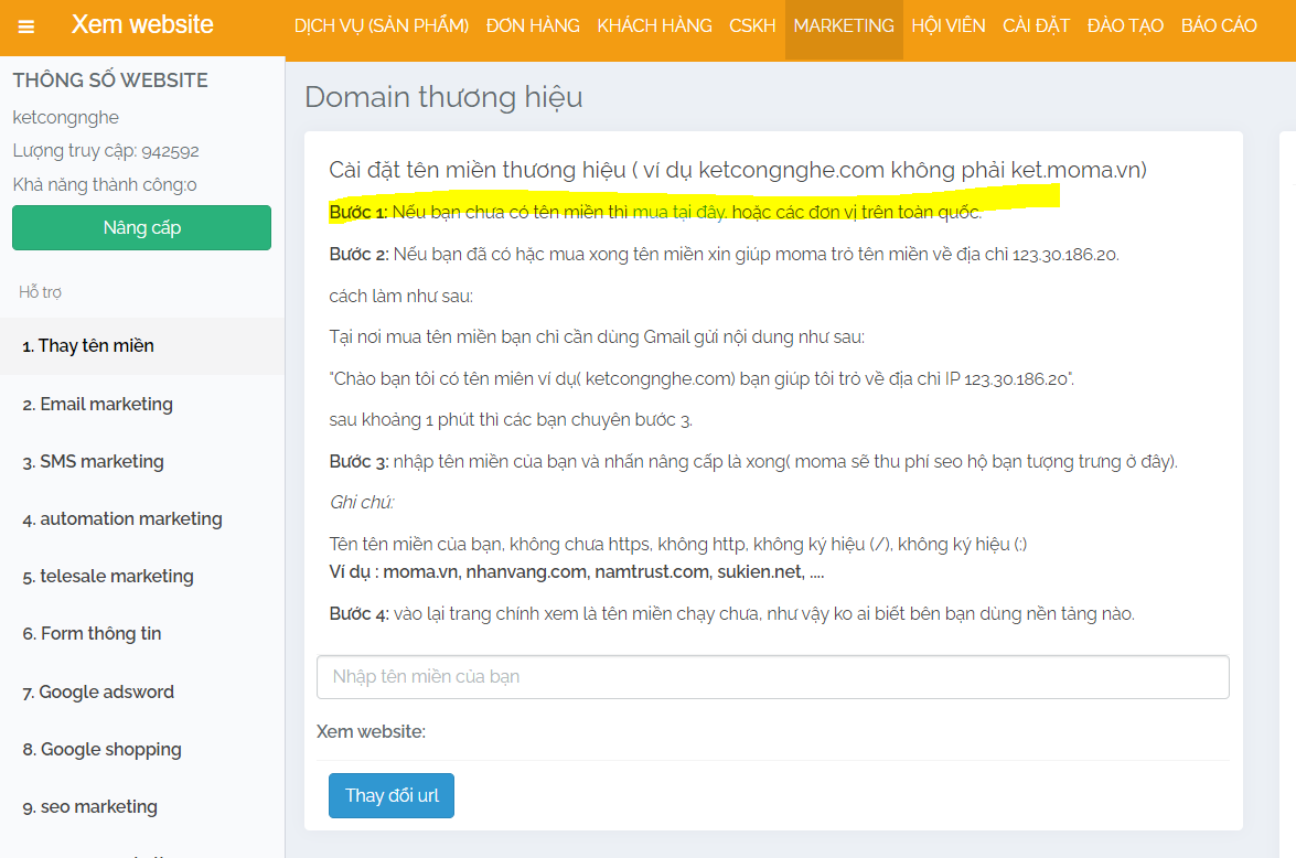 Với tính năng này moma đã miến phí trên miền doanh nghiệp mình tập kinh doanh khi có sản phẩm trước( bỏ qua chi phí tên miền và hosting)