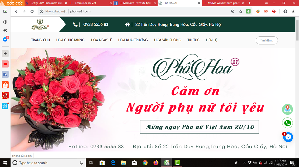 Mẫu website hoa tươi được tạo bằng nền tảng website miễn phí tổn moma: http://phohoa21.com/