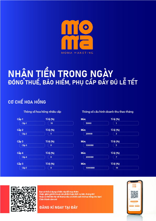 Với niềm tin sản phẩm moma sẽ hoàn lại 100% trong vòng 30 ngày sử dụng nếu khách hàng không hài lòng về sản phẩm, dịch vụ như đã thông báo ở trên. Thiếu tính năng. Giải pháp chưa đúng thì moma sẽ hoàn lại bạn 100% tiền đã thanh toán. Doanh thu cam kết một năm nếu không đạt thì năm thứ hai không mất chi phí phần mềm