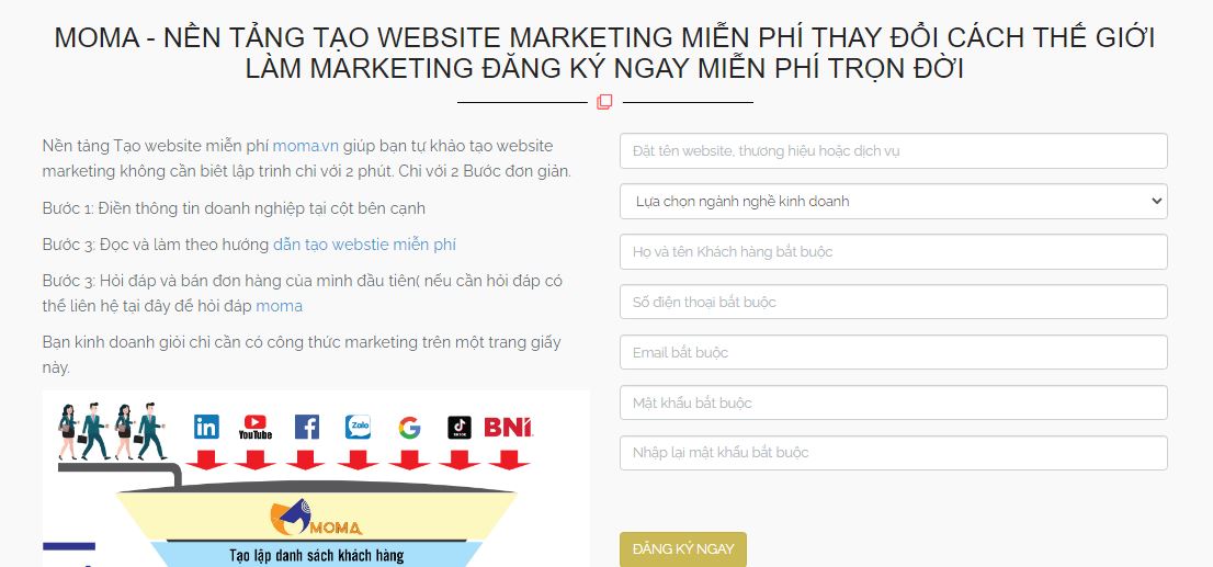 Tạo website marketing miễn phí trọn đời tại moma.vn