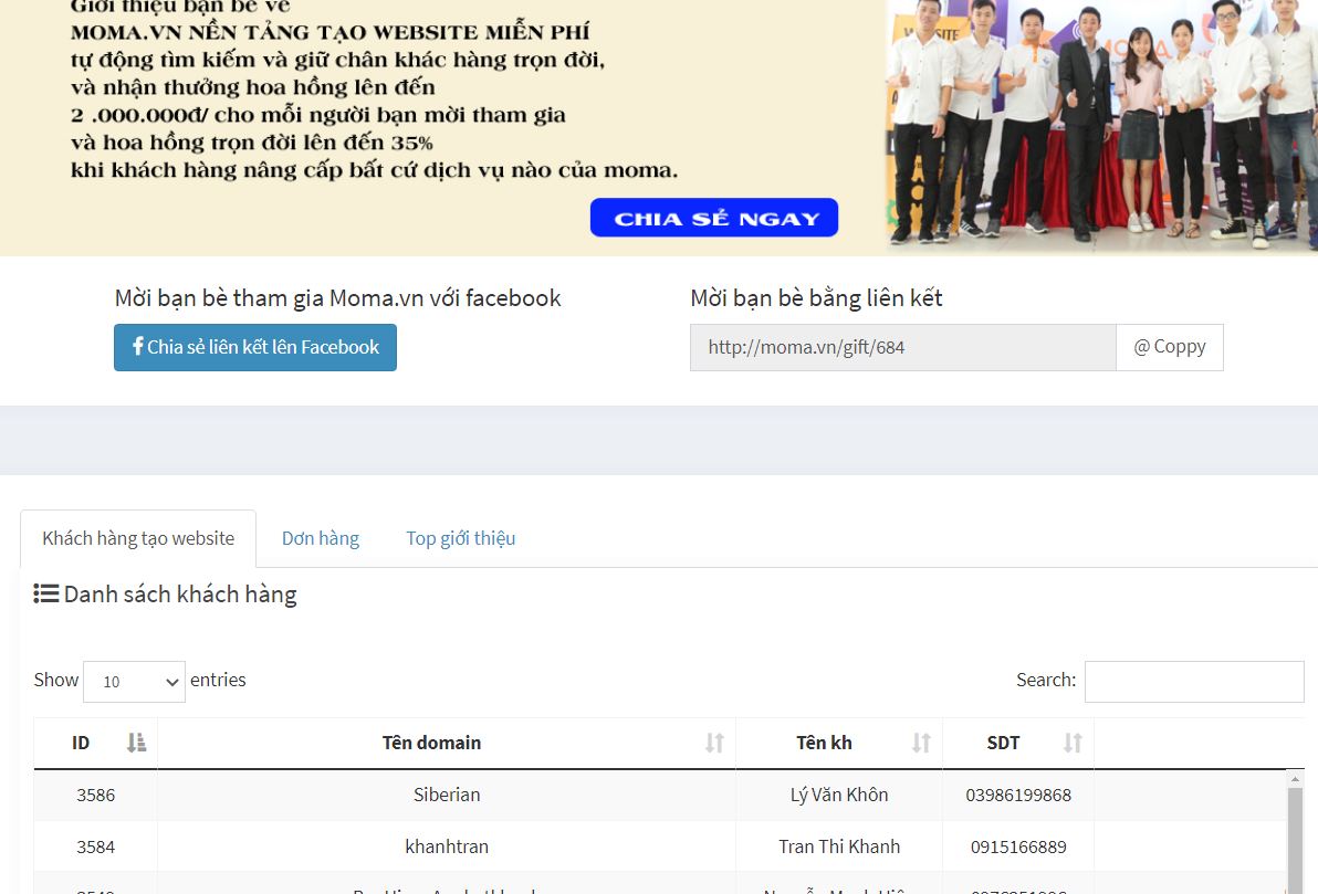 Công ty công nghệ MOMA hiện đang cung cấp nền tảng Tạo website miễn phí giúp bạn có thể tự tạo website bán hàng miễn phí mà không cần quan tâm đến lập trình, thiết kế. Với hơn 2000 khách hàng đang sử dụng và hàng trăm lượt đăng ký mới mỗi ngày.